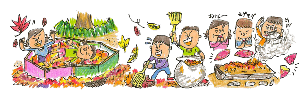 先日、子どもたちが集めた落ち葉を使って「焼き芋パーティー」をしました。