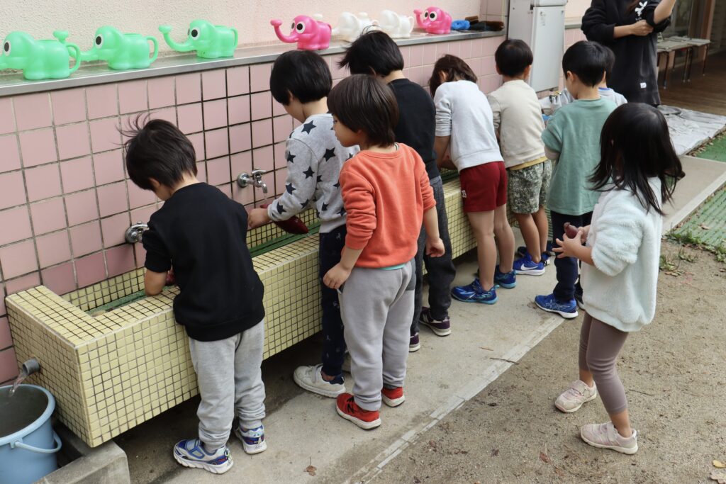 まずお芋を洗うところからです!