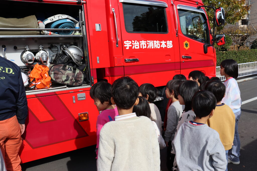 話を聞いた後は、消防車を近くで