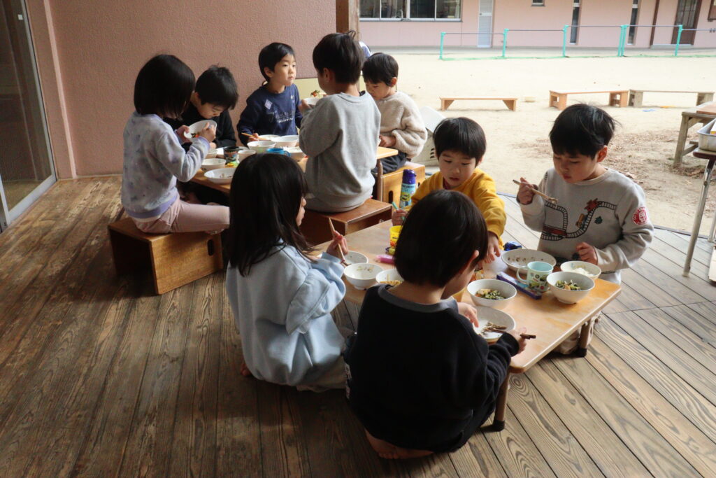 寒いけどこどもたちのリクエストで、テラスで食べました!