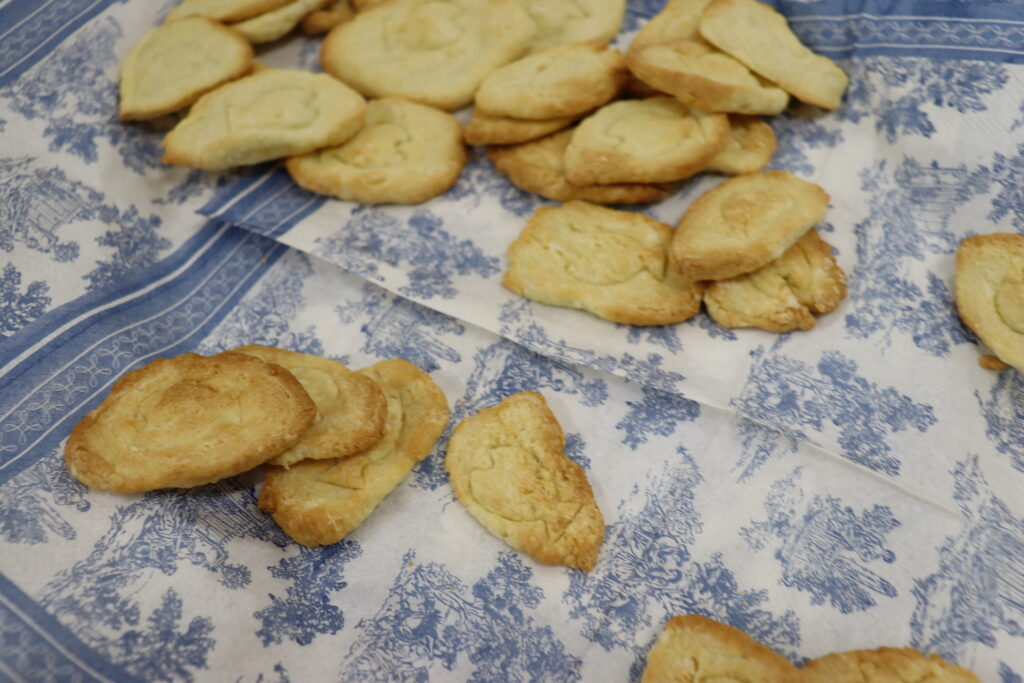 さかなのかたちをしたクッキーにしました。焼き上がったらびっくりするほど堅いクッキーになってしまいました。みんな頑張って食べてくれました!!